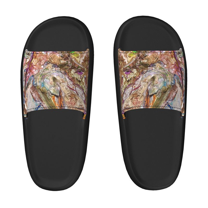 Step into chaos—literally.These premium Pillow Sliders feature an exclusive print from one of Stevo’s original paintings, turning everyday footwear into wearable art. Each pair brings Stevo’s raw, expressive energy to life, blending abstract colour, texture and movement with a clean, modern slider design.Built for comfort and durability, the Chaos Pillow Sliders are made with a soft, cushioned sole that supports your feet whether you're at home, in the studio, or out exploring. The upper band displays the artwork in vivid detail, making every step a statement.Perfect for fans of Some Bizzare’s legacy of boundary-pushing art, music and culture—these sliders are more than footwear. They’re an attitude.